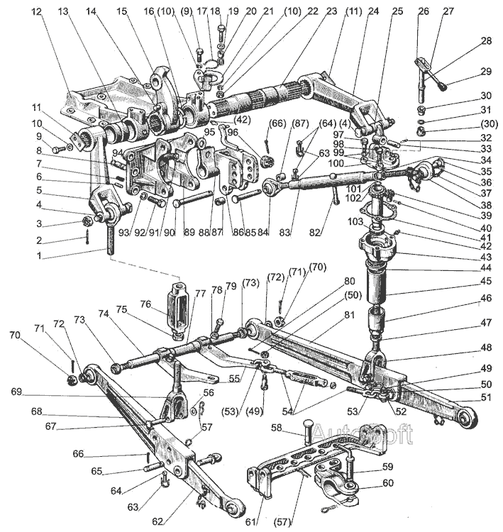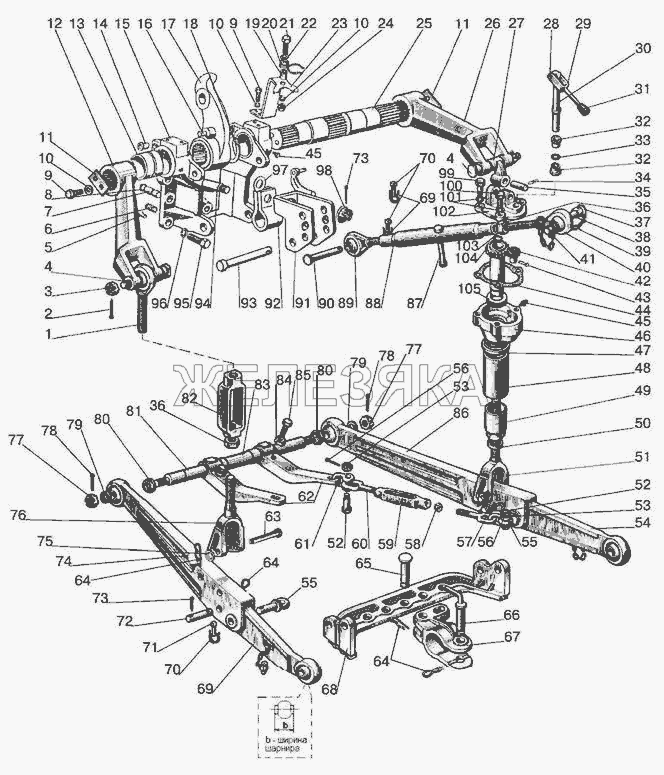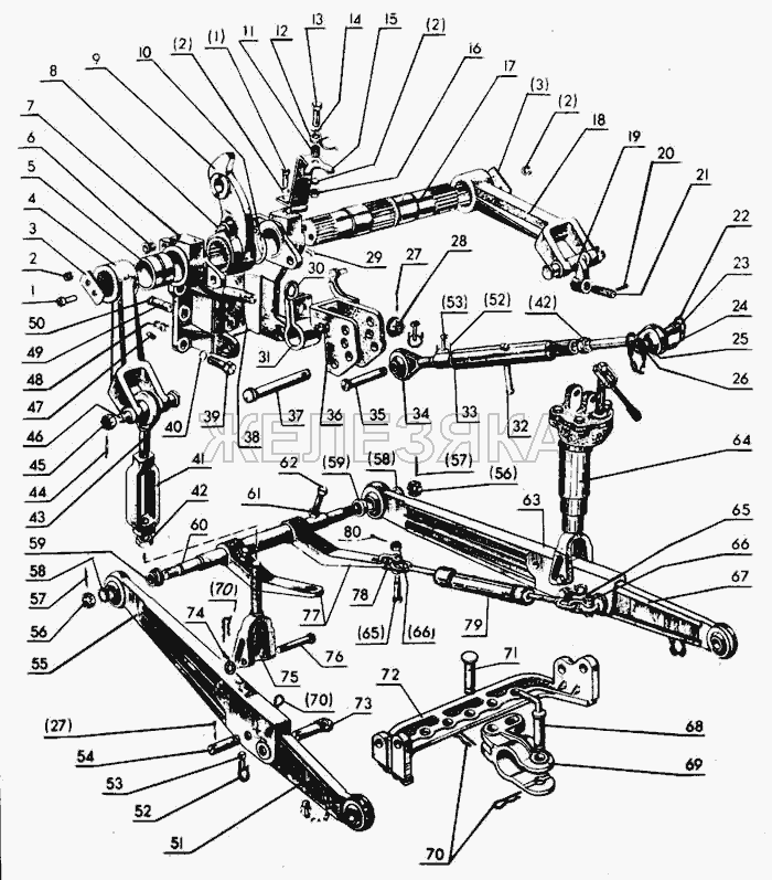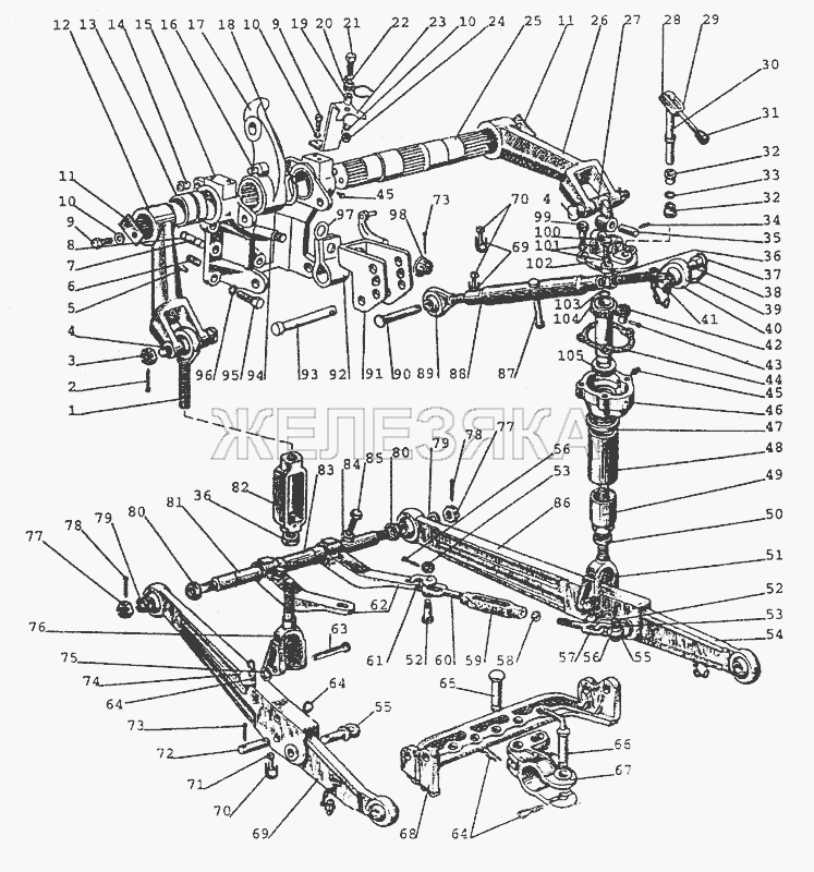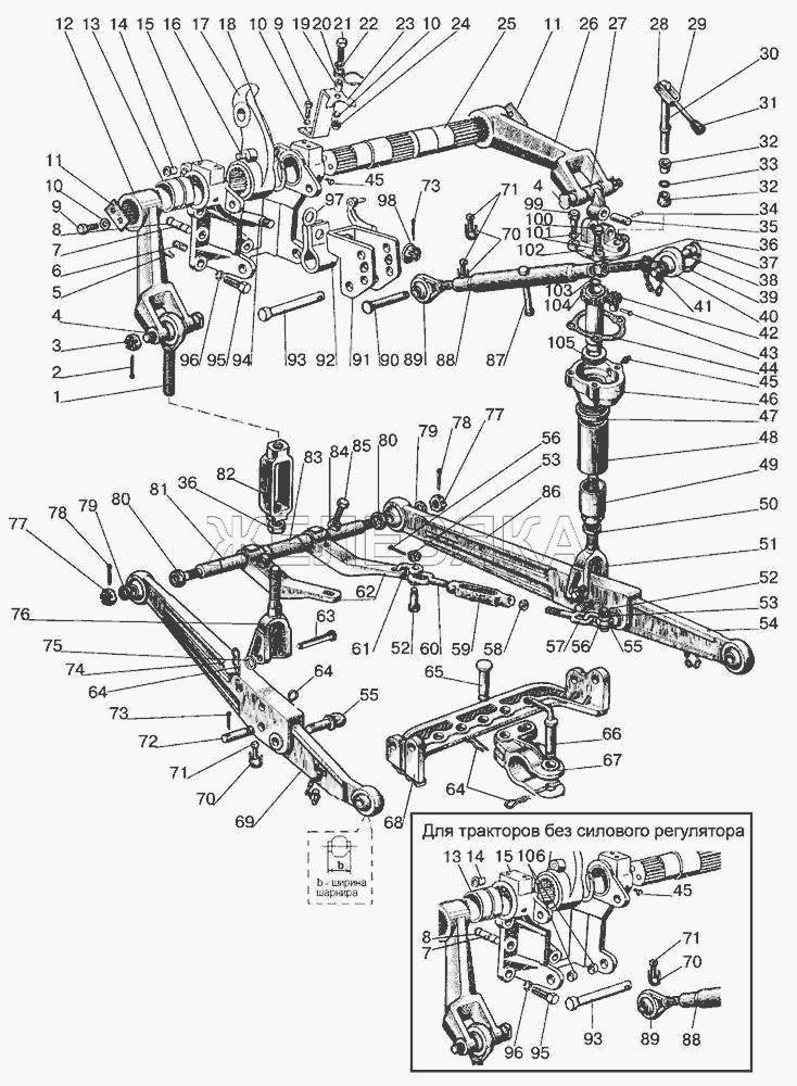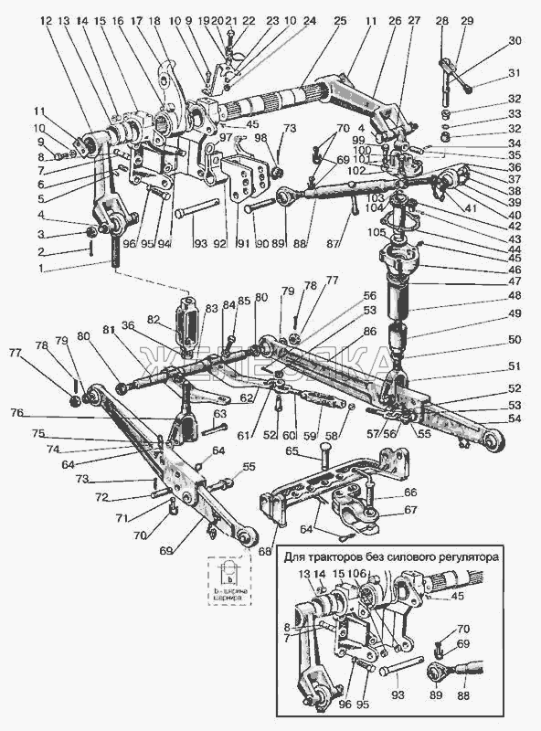 Механизм задней навески (для тракторов с силовым регулятором и без силового регулятора)