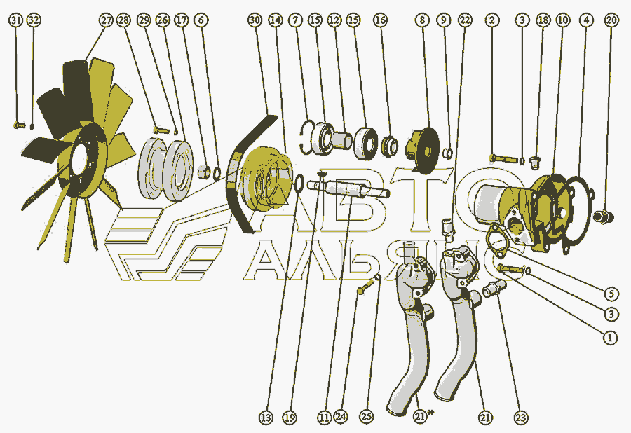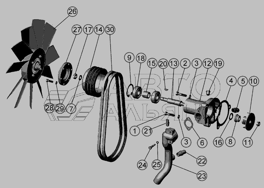 Вал водяного насоса Д-245 нов.обр. (пр-во Украина) 245-1307052-Г